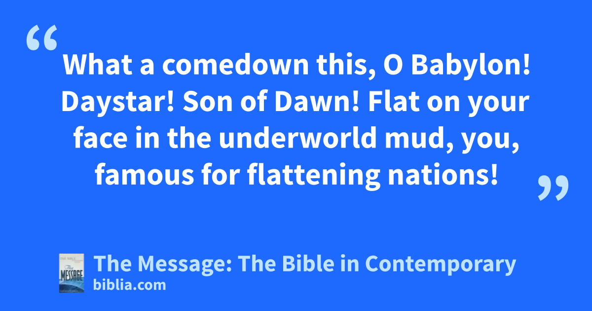 3–4 When God has given you time to recover from the abuse and trouble and harsh servitude that you had to endure, you can amuse yourselves by taking up this satire, a taunt against the king of Babylon: