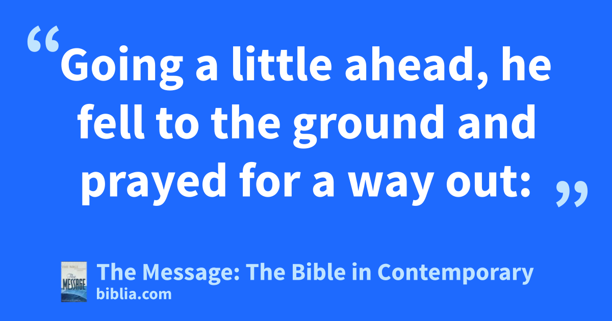 35–36 Going a little ahead, he fell to the ground and prayed for a way out: “Papa, Father, you can—can’t you?—get me out of this. Take this cup away from me. But please, not what I want—what do you want?”
