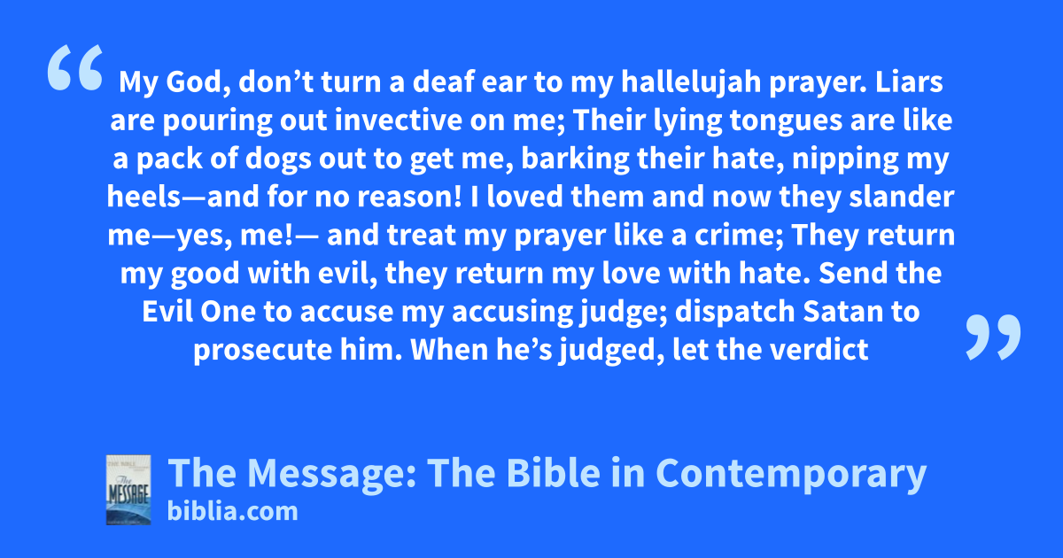 1–5 109 My God, don’t turn a deaf ear to my hallelujah prayer.