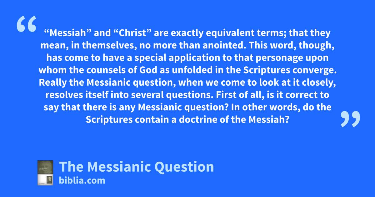 C. I. Scofield’s the Messianic Question is a brief treatise on the question of Jesus as the Messiah. Scofield attempts to analyze the doctrine of the Messiah in both the Old and the New Testaments to see if it is possible to know who he is and what the Bible teaches in regard to a Messiah.