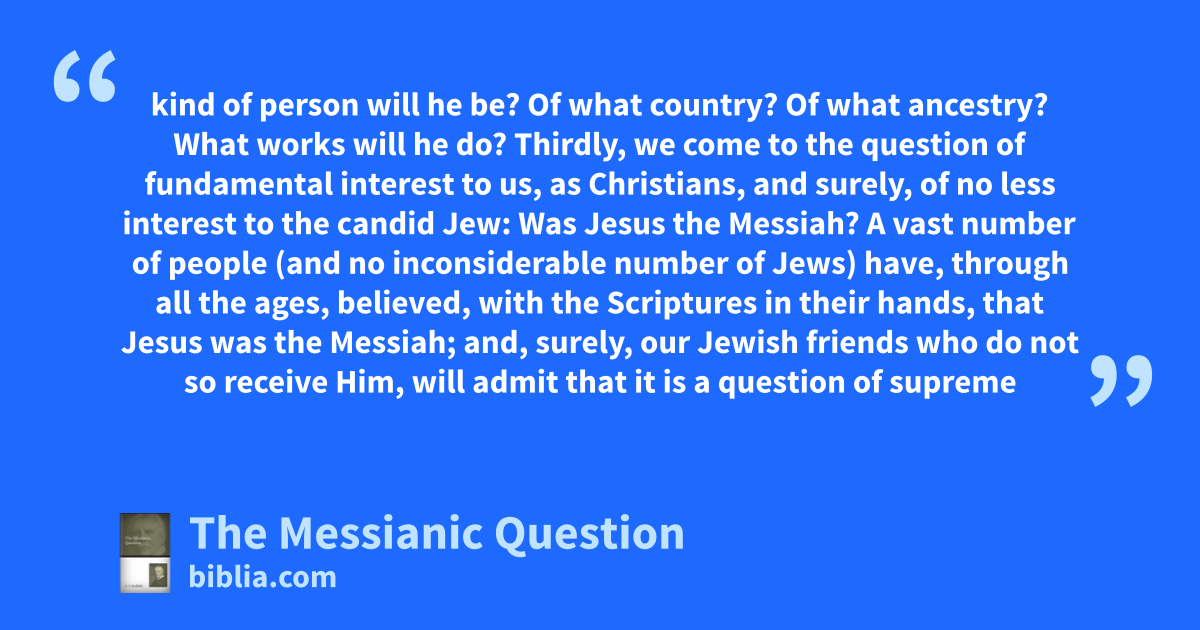 C. I. Scofield’s the Messianic Question is a brief treatise on the question of Jesus as the Messiah. Scofield attempts to analyze the doctrine of the Messiah in both the Old and the New Testaments to see if it is possible to know who he is and what the Bible teaches in regard to a Messiah.