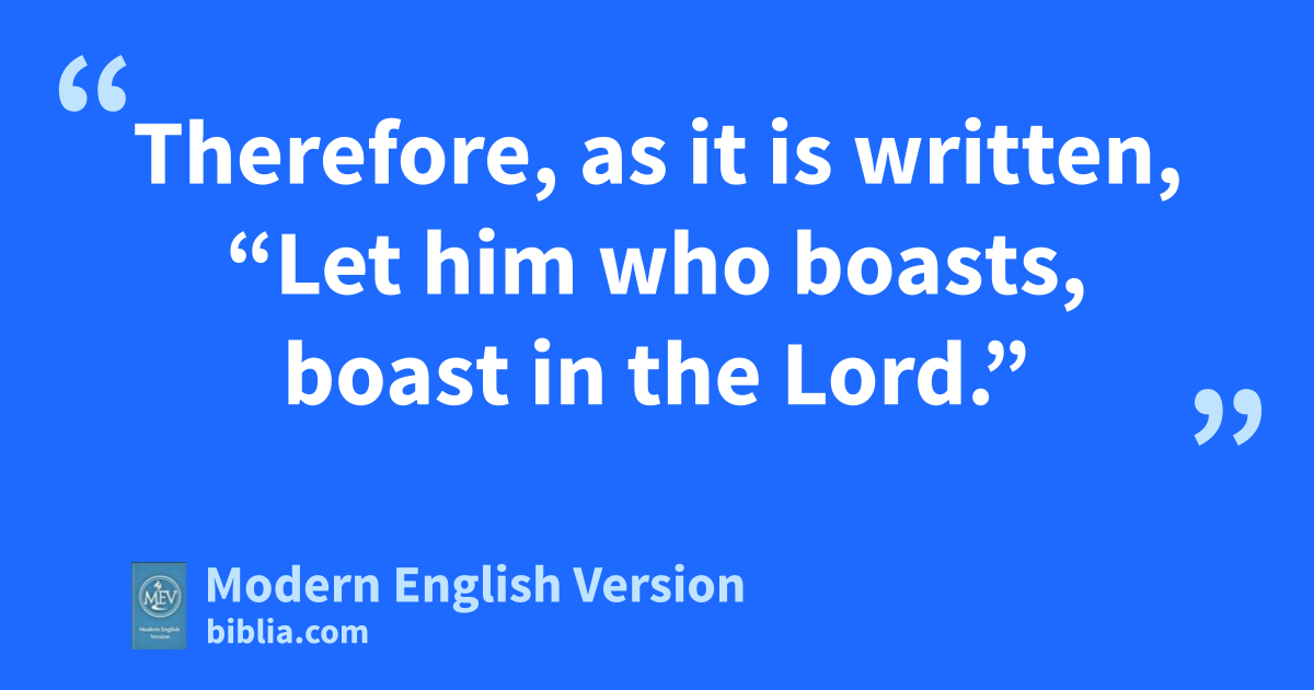 Therefore, as it is written, “Let him who boasts, boast in the Lord.”