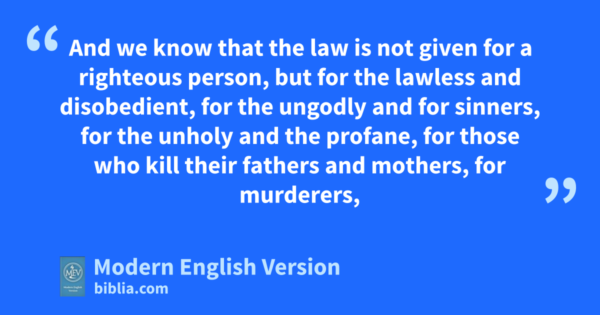 And we know that the law is not given for a righteous person, but for the lawless and disobedient, for the ungodly and for sinners, for the unholy and the profane, for those who kill their fathers and mothers, for murderers,