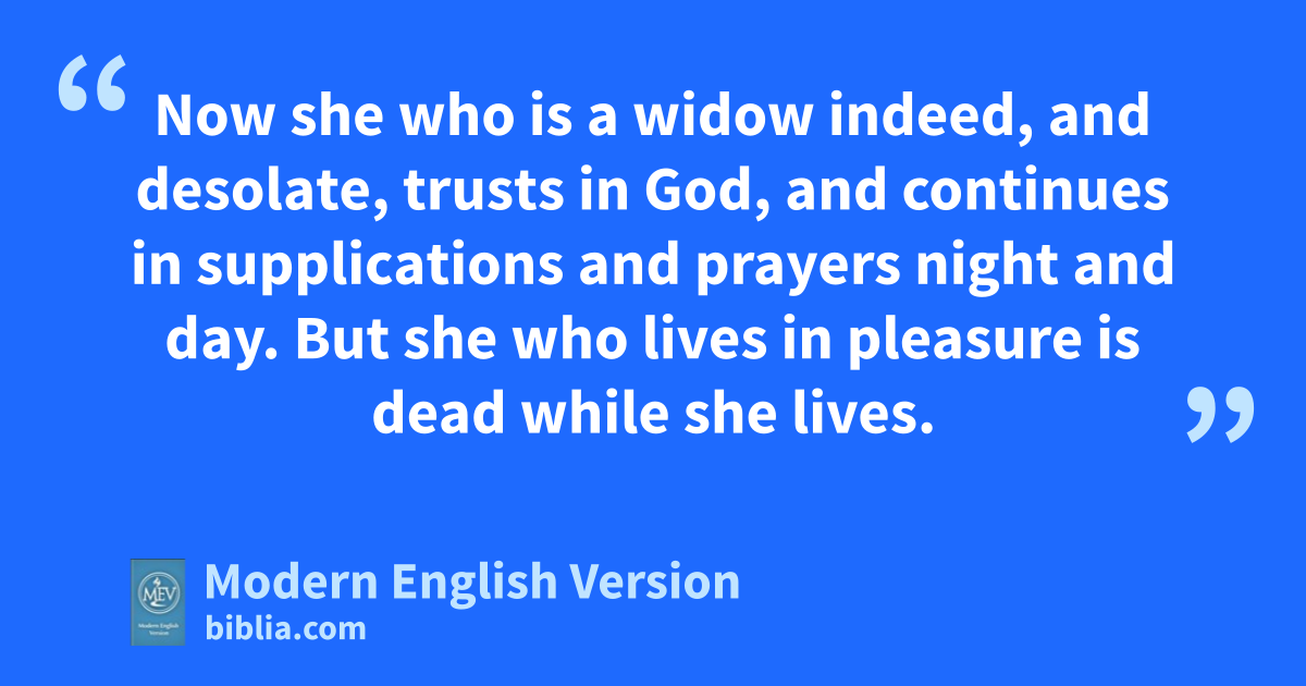 Now she who is a widow indeed, and desolate, trusts in God, and continues in supplications and prayers night and day. But she who lives in pleasure is dead while she lives.