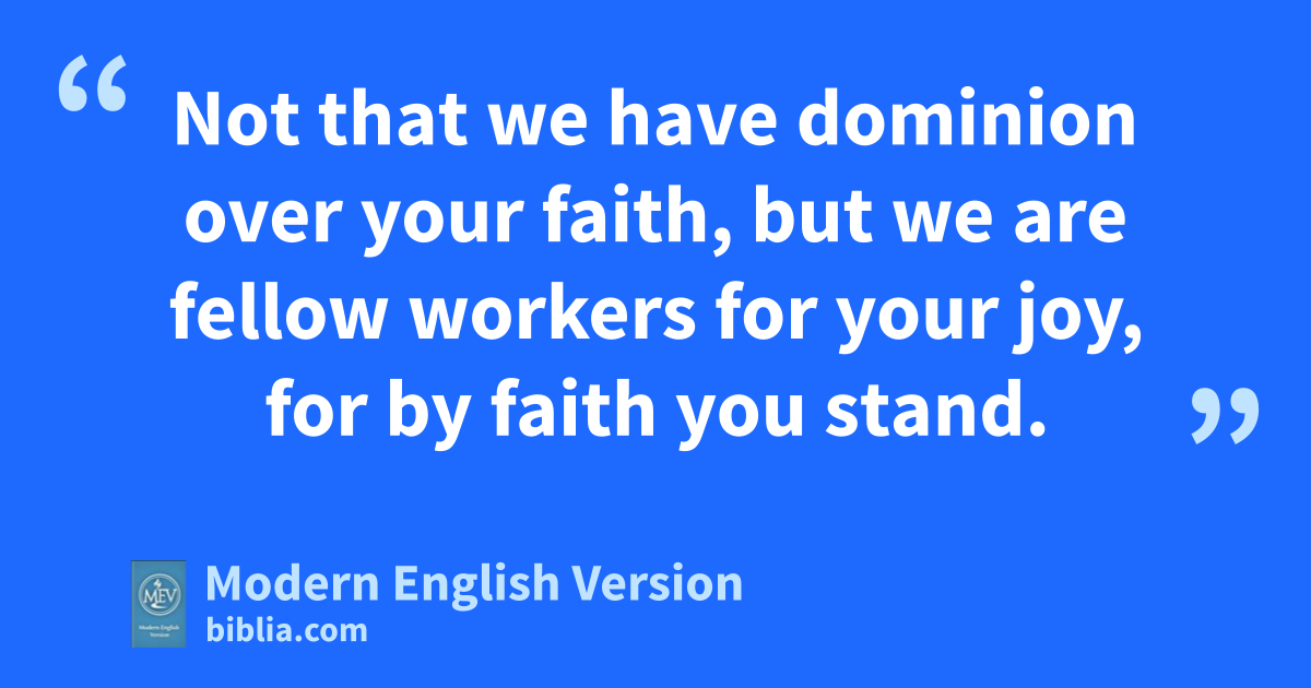 Not that we have dominion over your faith, but we are fellow workers for your joy, for by faith you stand.