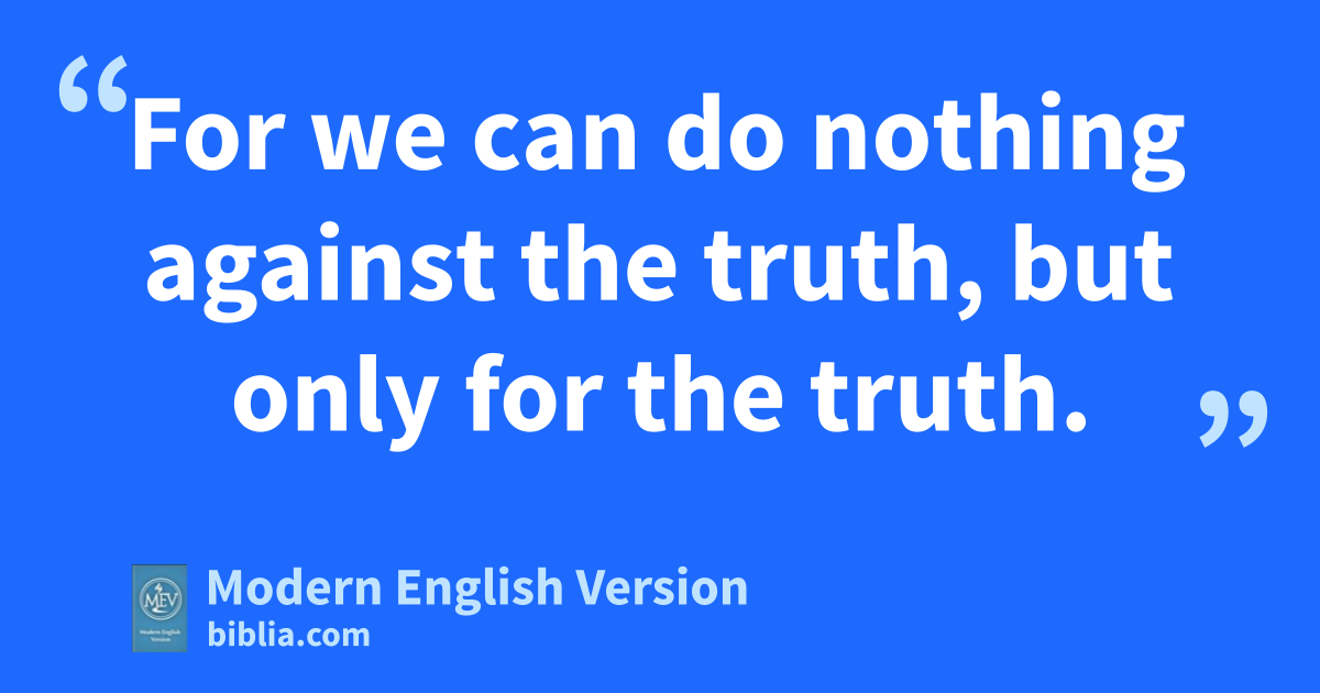 For we can do nothing against the truth, but only for the truth.