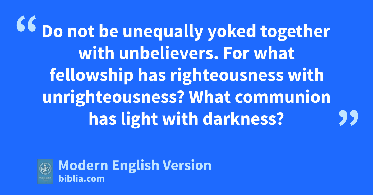 Do not be unequally yoked together with unbelievers. For what fellowship has righteousness with unrighteousness? What communion has light with darkness?