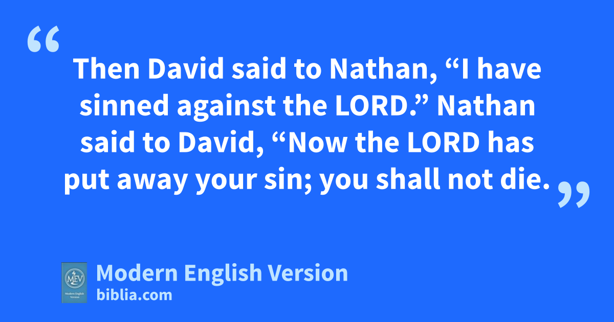 Then David said to Nathan, “I have sinned against the LORD.” Nathan said to David, “Now the LORD has put away your sin; you shall not die.