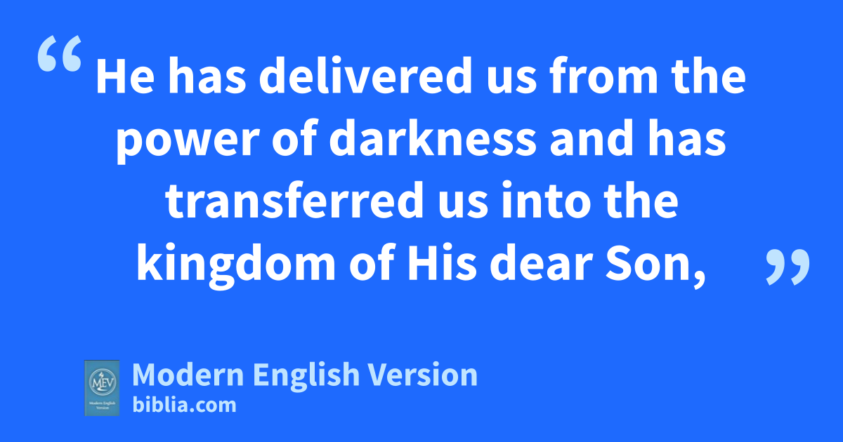 He has delivered us from the power of darkness and has transferred us into the kingdom of His dear Son,