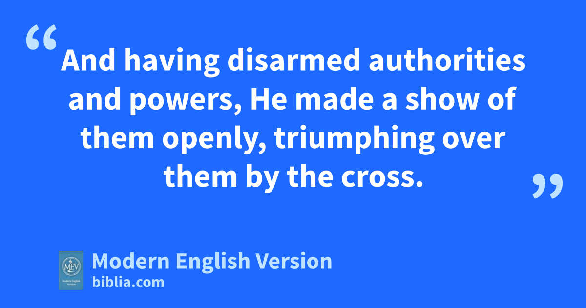 And having disarmed authorities and powers, He made a show of them openly, triumphing over them by the cross.