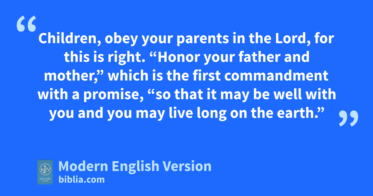 Children, obey your parents in the Lord, for this is right. “Honor your father and mother,” which is the first commandment with a promise, “so that it may be well with you and you may live long on the earth.”