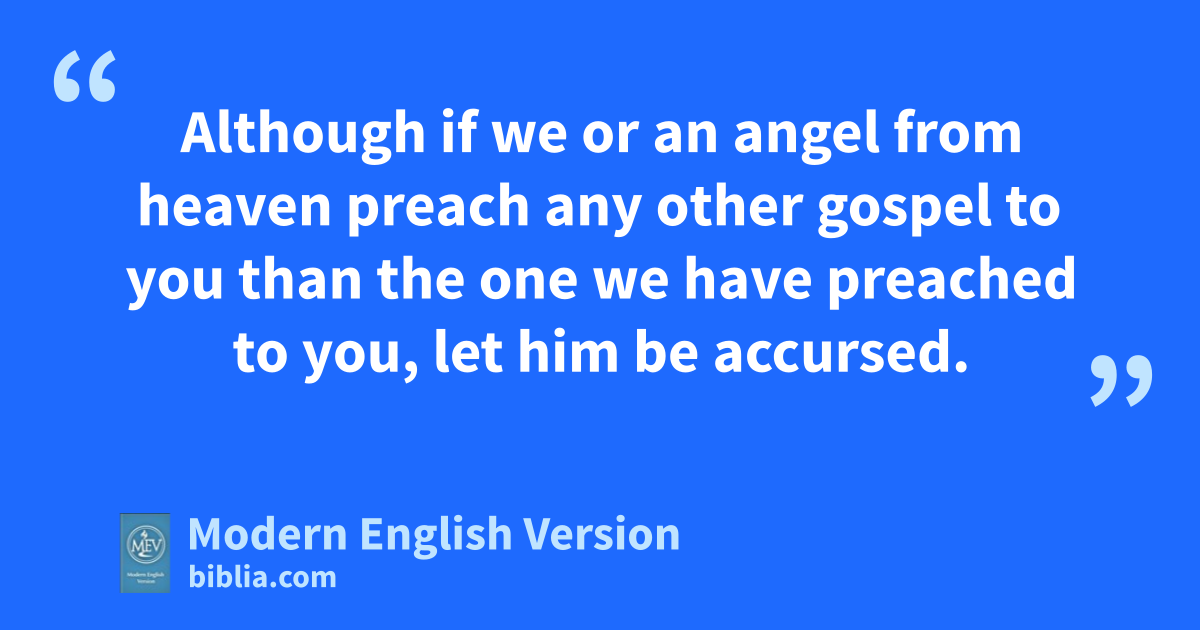 Although if we or an angel from heaven preach any other gospel to you than the one we have preached to you, let him be accursed.