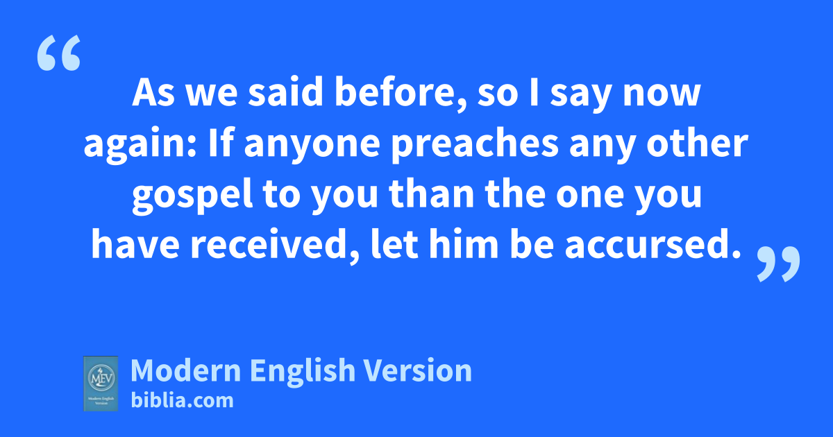 As we said before, so I say now again: If anyone preaches any other gospel to you than the one you have received, let him be accursed.