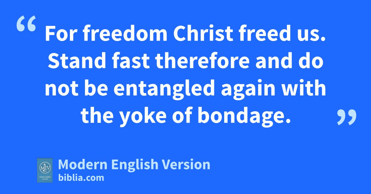 For freedom Christ freed us. Stand fast therefore and do not be entangled again with the yoke of bondage.