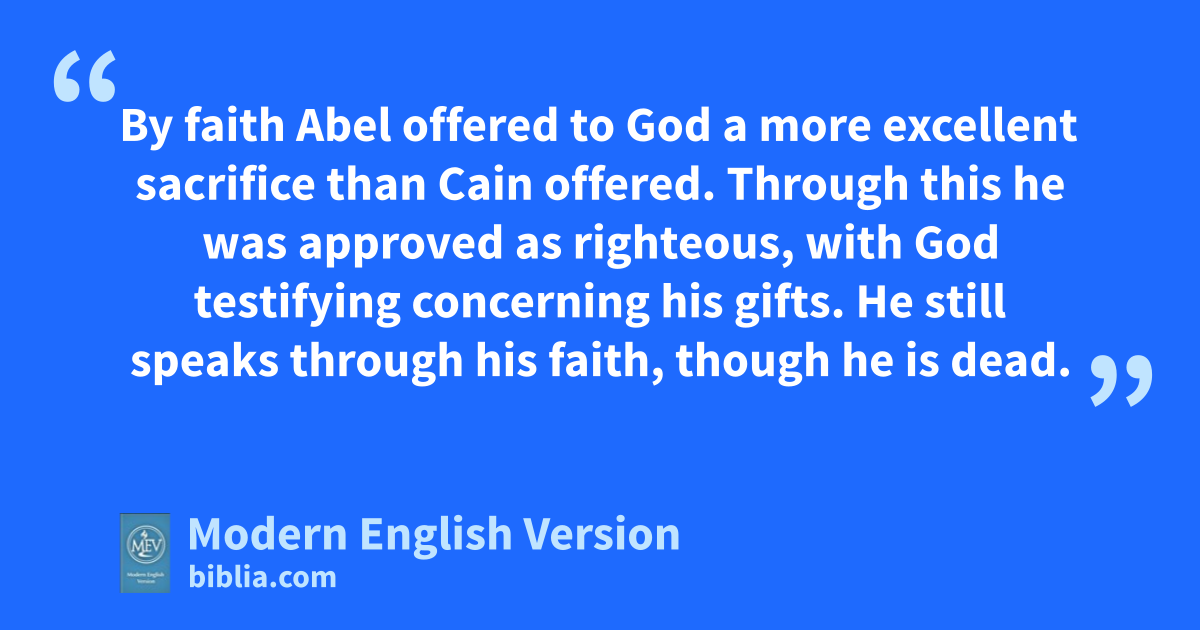 By faith Abel offered to God a more excellent sacrifice than Cain offered. Through this he was approved as righteous, with God testifying concerning his gifts. He still speaks through his faith, though he is dead.
