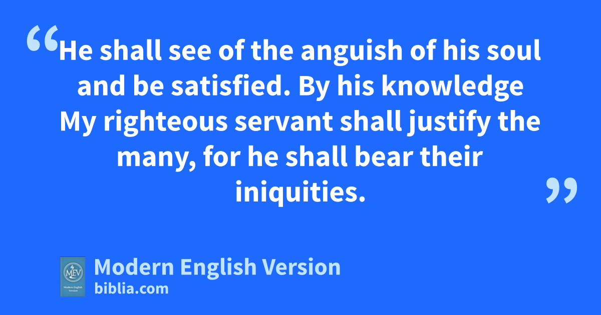 He shall see of the anguish of his soul and be satisfied. By his knowledge My righteous servant shall justify the many, for he shall bear their iniquities.