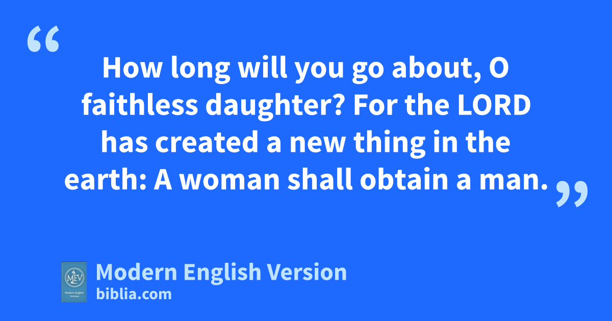 How long will you go about, O faithless daughter? For the LORD has created a new thing in the earth: A woman shall obtain a man.