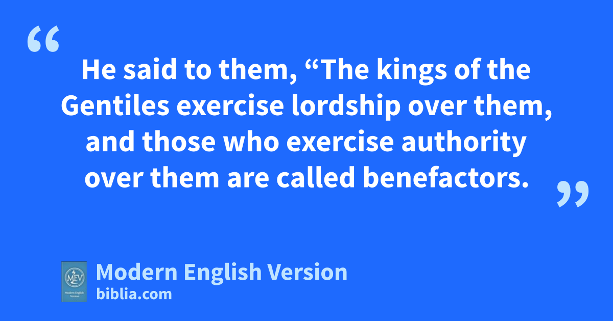 He said to them, “The kings of the Gentiles exercise lordship over them, and those who exercise authority over them are called benefactors.