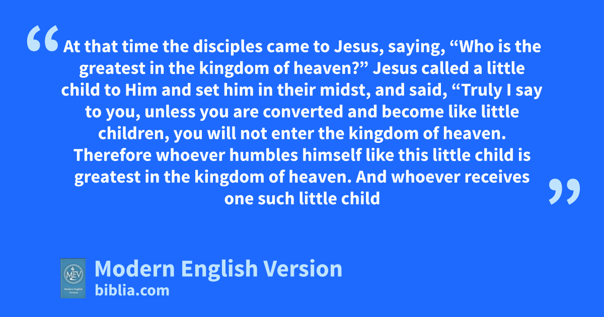 At that time the disciples came to Jesus, saying, “Who is the greatest in the kingdom of heaven?” Jesus called a little child to Him and set him in their midst, and said, “Truly I say to you, unless you are converted and become like little children, you will not enter the kingdom of heaven. Therefore whoever humbles himself like this little child is greatest in the kingdom of heaven. And whoever receives one such little child