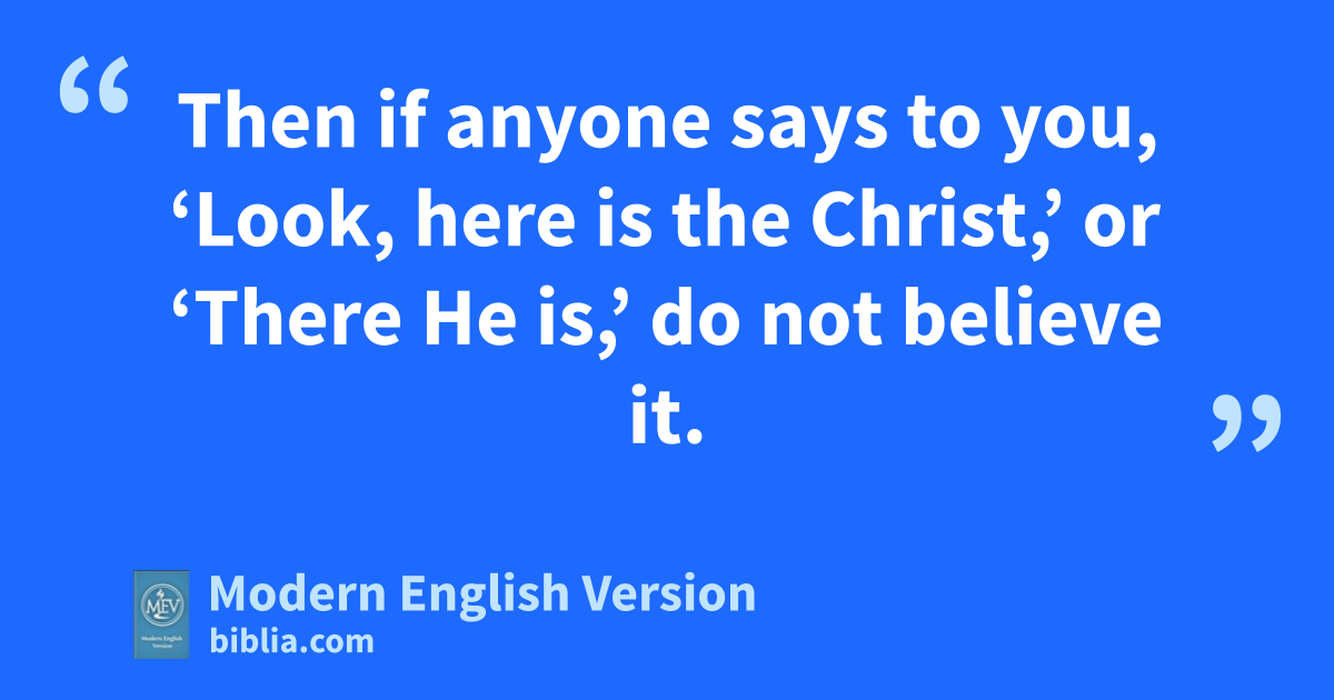 Then if anyone says to you, ‘Look, here is the Christ,’ or ‘There He is,’ do not believe it.