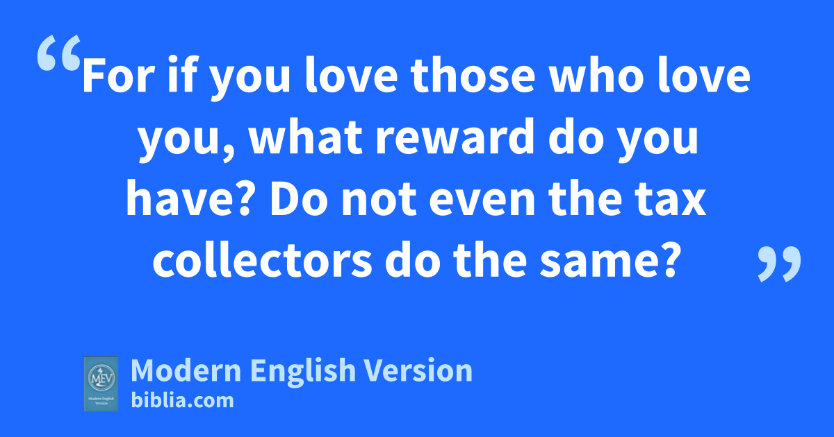 For if you love those who love you, what reward do you have? Do not even the tax collectors do the same?