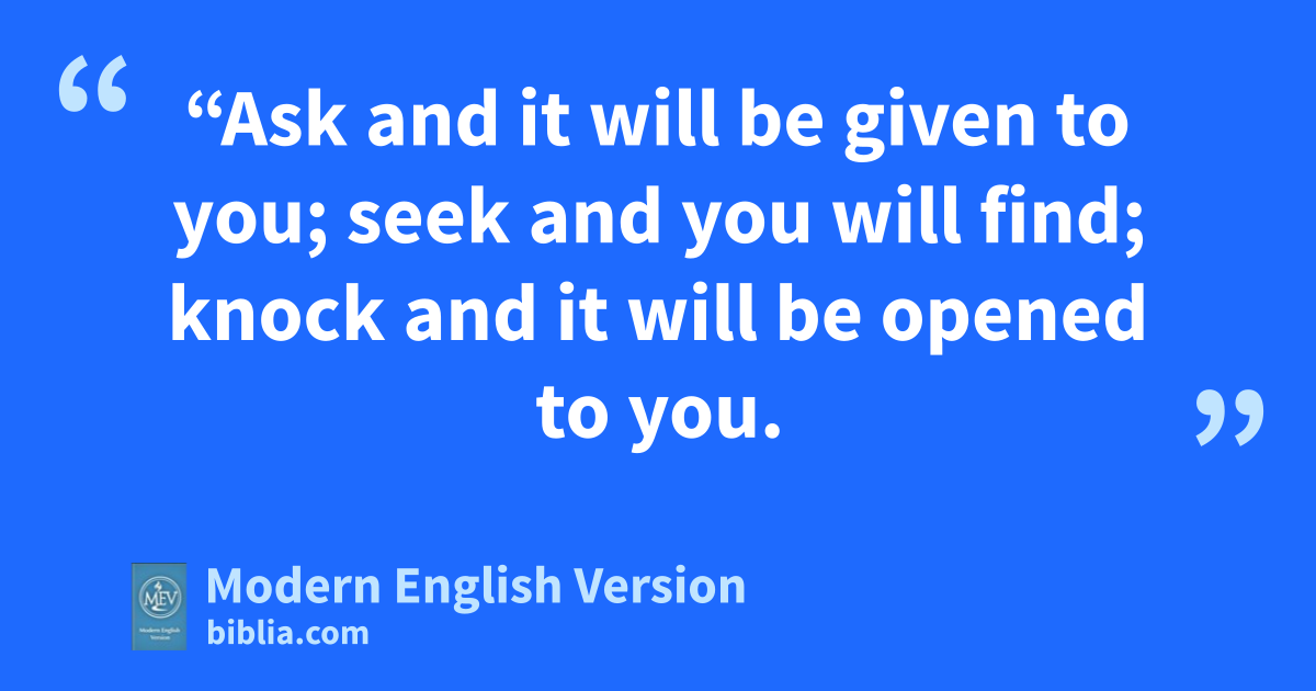 “Ask and it will be given to you; seek and you will find; knock and it will be opened to you.