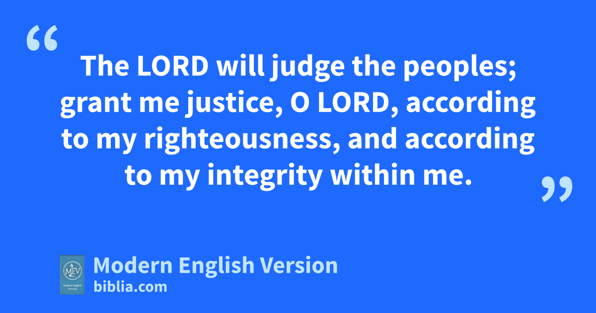 The LORD will judge the peoples; grant me justice, O LORD, according to my righteousness, and according to my integrity within me.