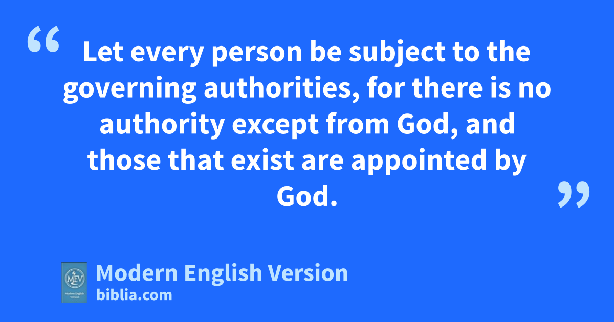 Let every person be subject to the governing authorities, for there is no authority except from God, and those that exist are appointed by God.