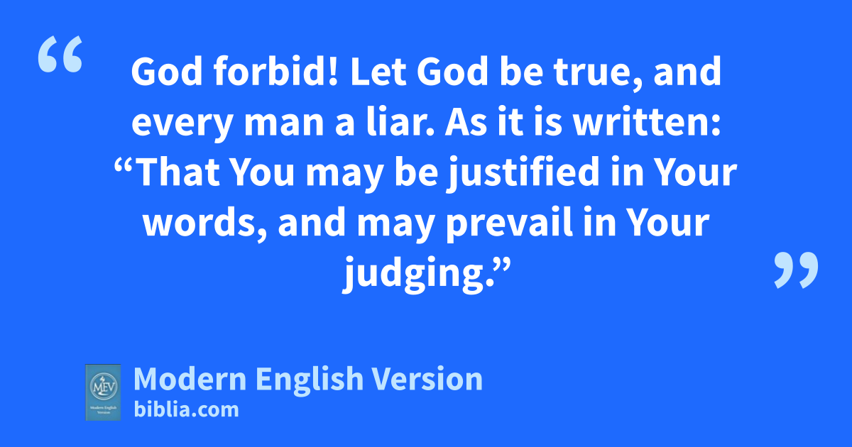 God forbid! Let God be true, and every man a liar. As it is written: “That You may be justified in Your words, and may prevail in Your judging.”