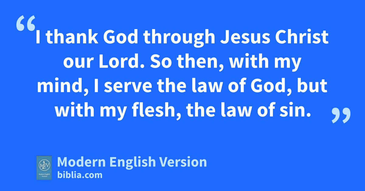 I thank God through Jesus Christ our Lord. So then, with my mind, I serve the law of God, but with my flesh, the law of sin.