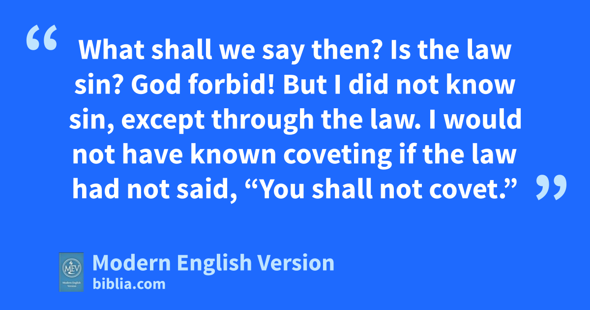 What shall we say then? Is the law sin? God forbid! But I did not know sin, except through the law. I would not have known coveting if the law had not said, “You shall not covet.”