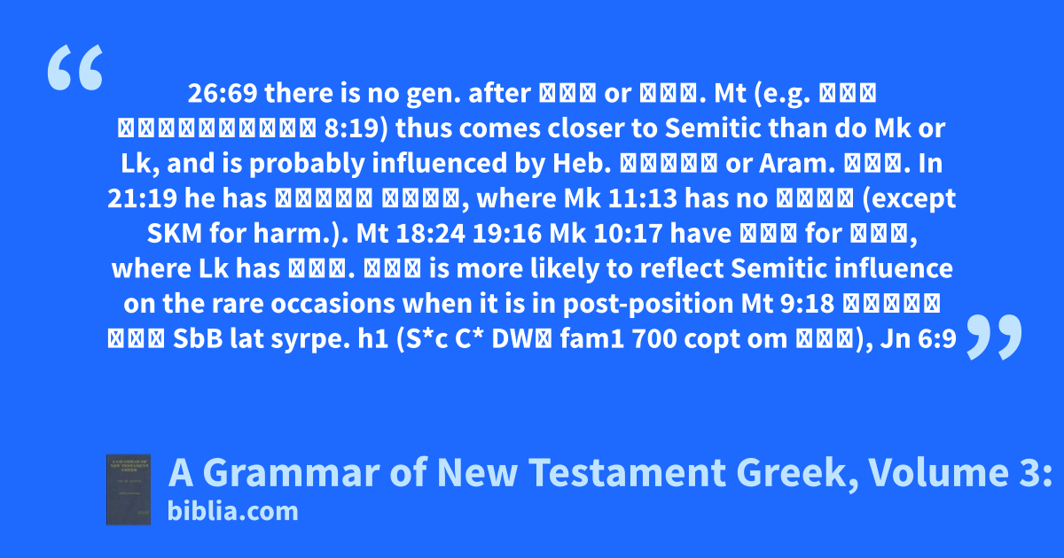 With the death of W. F. Howard in 1952, responsibility to continue Moulton’s grammar fell to Nigel Turner. A careful and cogent addition, Turner’s Syntax continues the preceding volumes’ legacy of exceptional scholarship, with one difference. Turner’s analysis suggests that “Biblical Greek is a unique language with a unity and character of its own.” Unlike Moulton, Turner emphasizes the...