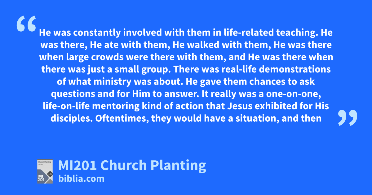 He was constantly involved with them in life-related teaching. He was there, He ate with them, He walked with them, He was there when large crowds were there with them, and He was there when there was just a small group. There was real-life demonstrations of what ministry was about. He gave them chances to ask questions and for Him to answer. It really was a one-on-one, life-on-life mentoring kind of action that Jesus exhibited for His disciples. Oftentimes, they would have a situation, and then