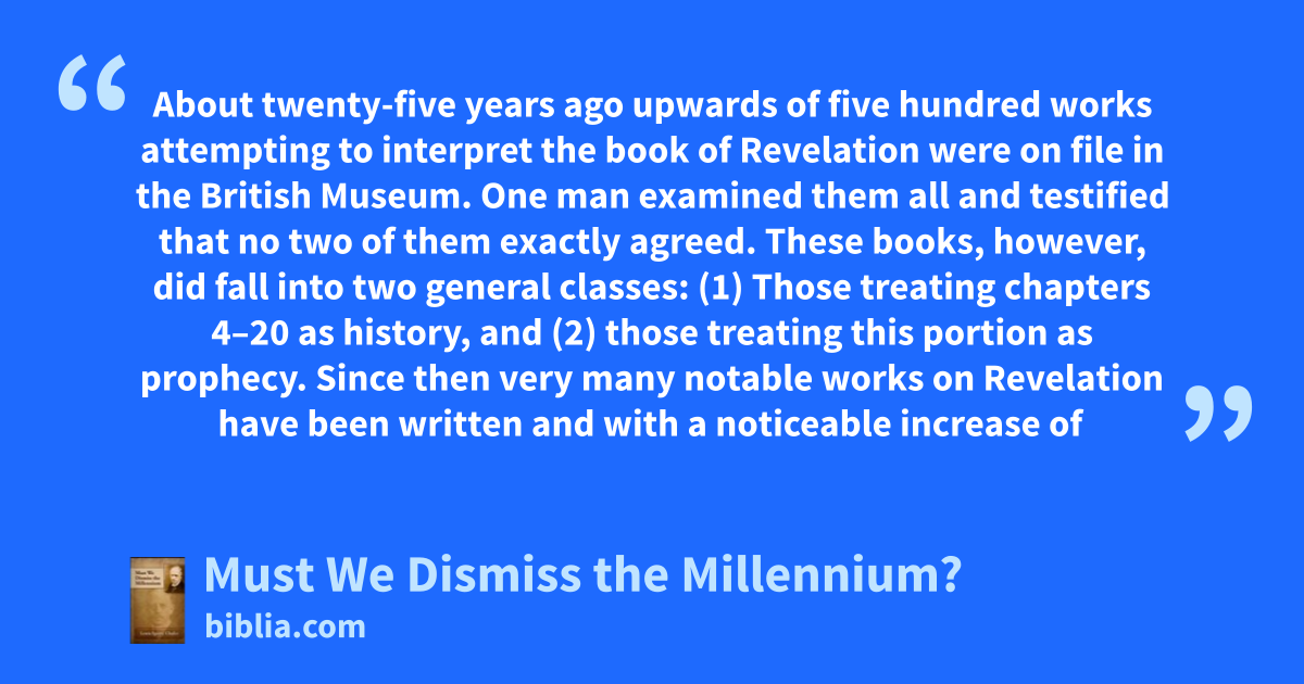 This slim volume contains Chafer’s response to the Reverend Eugene Caldwell publication entitled, The Millennium, which was published in 1920. Chafer offers his perspective and insight on the book of Revelation. Viewing it as primarily a book of prophecy, Chafer gives an outline of Revelation, as well as a critique of Reverend Caldwell’s views on the Apocalypse.