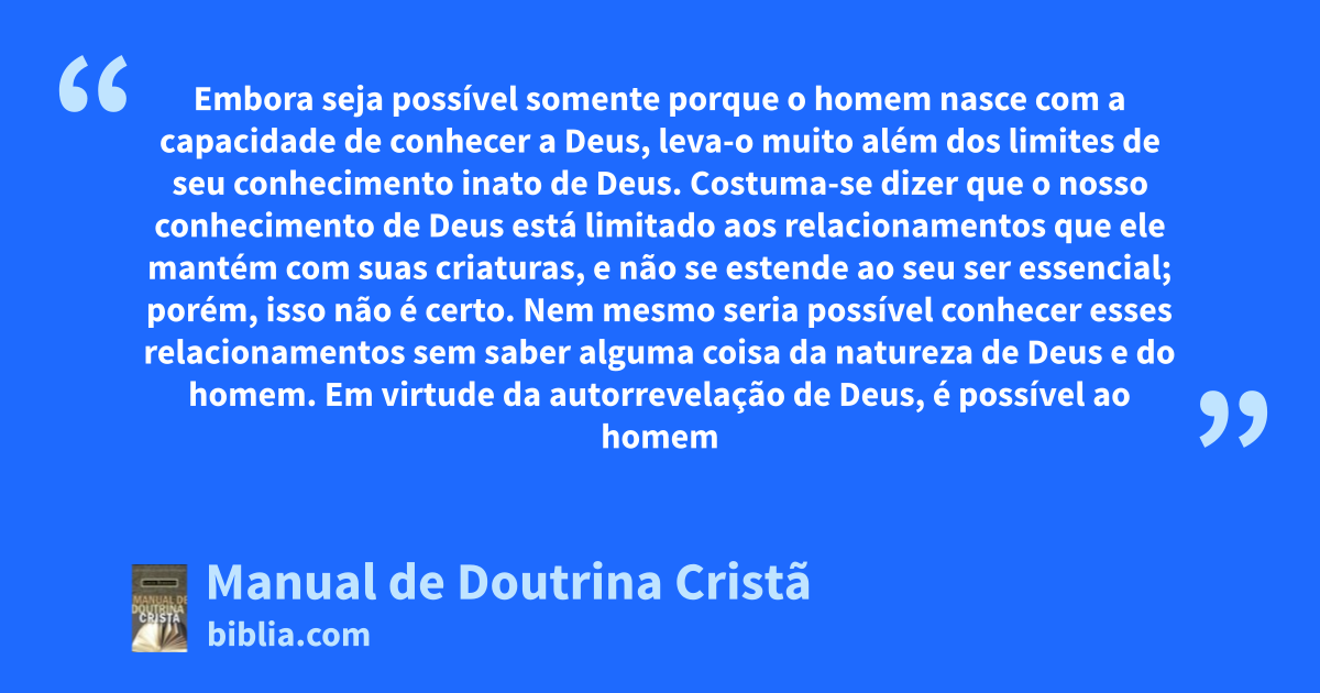 Embora seja possível somente porque o homem nasce com a capacidade de conhecer a Deus, leva-o muito além dos limites de seu conhecimento inato de Deus. Costuma-se dizer que o nosso conhecimento de Deus está limitado aos relacionamentos que ele mantém com suas criaturas, e não se estende ao seu ser essencial; porém, isso não é certo. Nem mesmo seria possível conhecer esses relacionamentos sem saber alguma coisa da natureza de Deus e do homem. Em virtude da autorrevelação de Deus, é possível ao homem