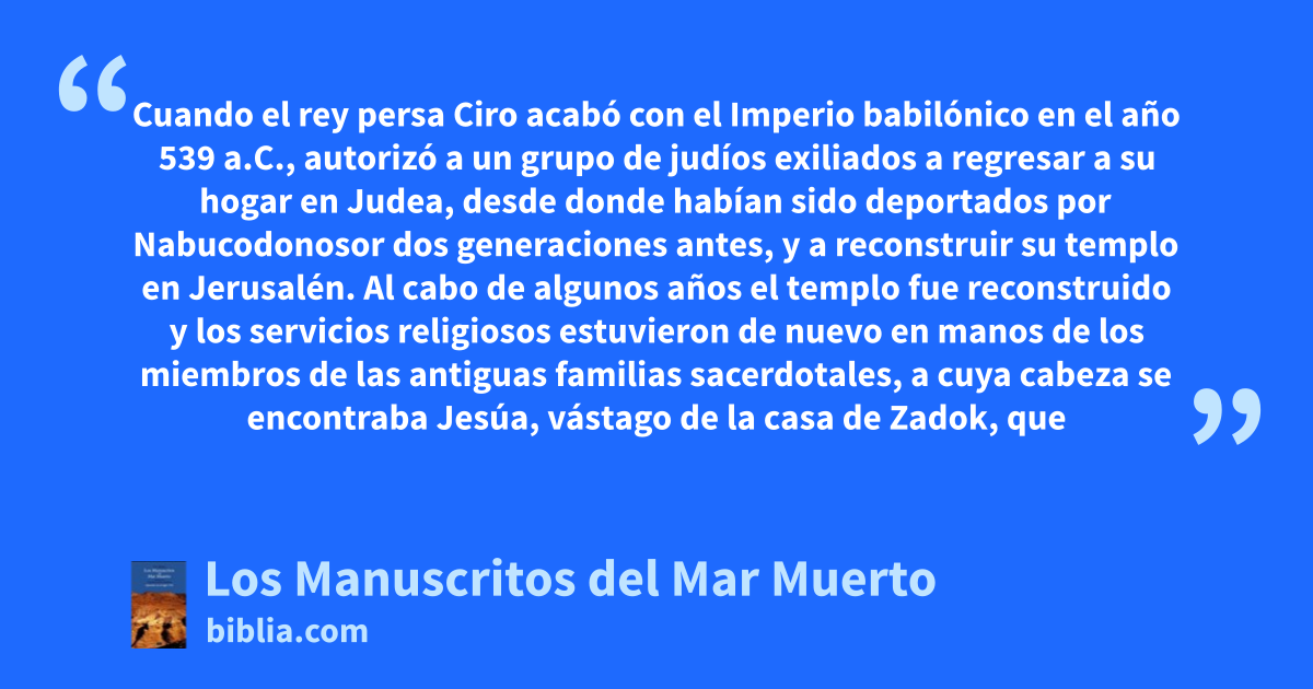 Cuando el rey persa Ciro acabó con el Imperio babilónico en el año 539 a.C., autorizó a un grupo de judíos exiliados a regresar a su hogar en Judea, desde donde habían sido deportados por Nabucodonosor dos generaciones antes, y a reconstruir su templo en Jerusalén. Al cabo de algunos años el templo fue reconstruido y los servicios religiosos estuvieron de nuevo en manos de los miembros de las antiguas familias sacerdotales, a cuya cabeza se encontraba Jesúa, vástago de la casa de Zadok, que