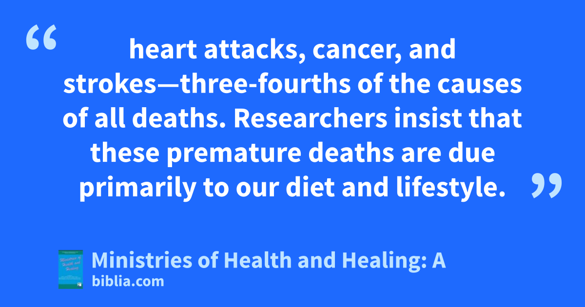 heart attacks, cancer, and strokes—three-fourths of the causes of all deaths. Researchers insist that these premature deaths are due primarily to our diet and lifestyle.