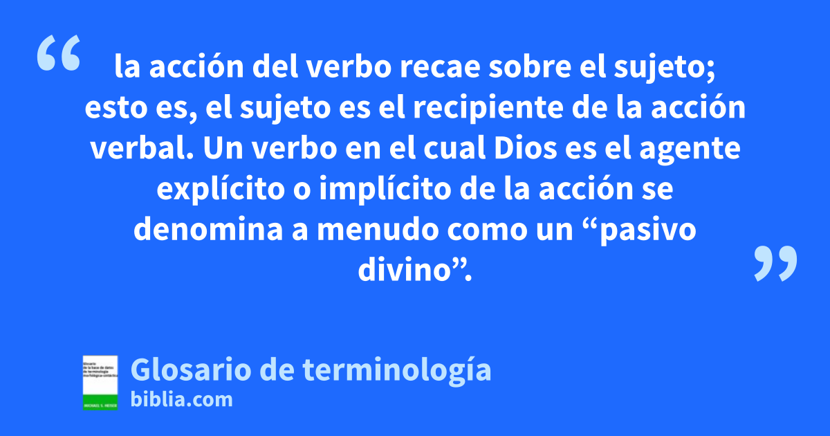 la acción del verbo recae sobre el sujeto; esto es, el sujeto es el recipiente de la acción verbal. Un verbo en el cual Dios es el agente explícito o implícito de la acción se denomina a menudo como un “pasivo divino”.