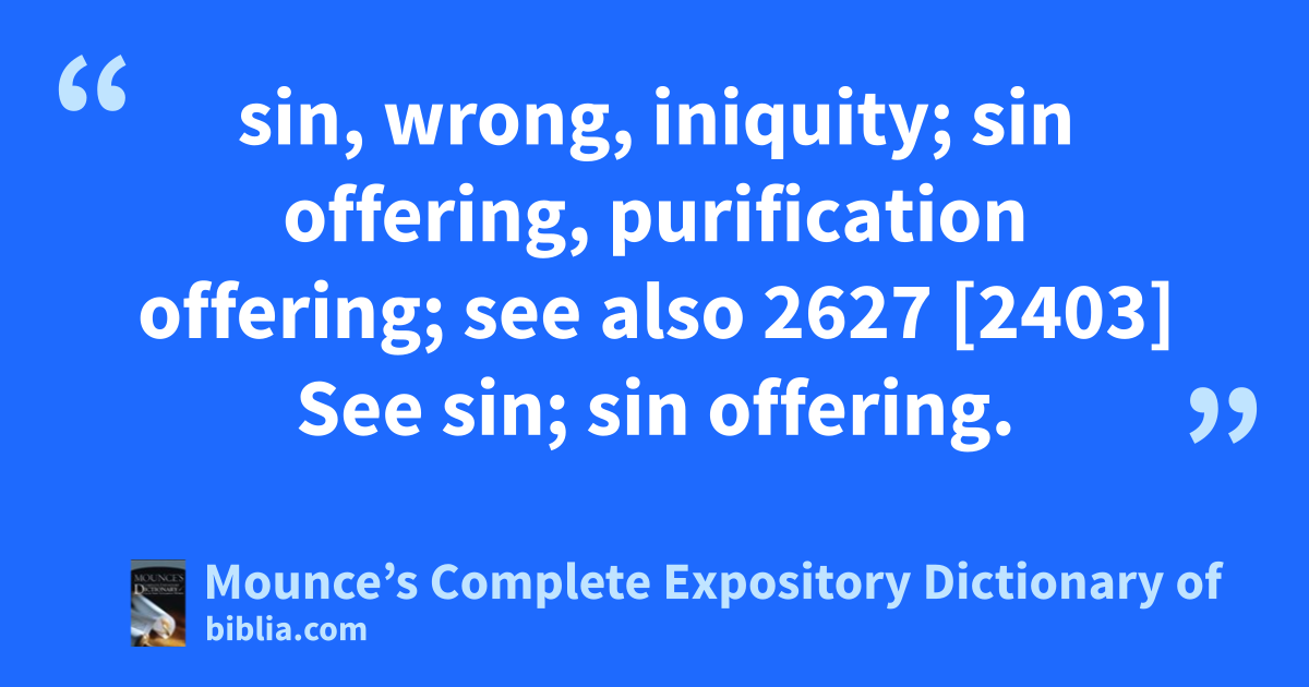 sin, wrong, iniquity; sin offering, purification offering; see also 2627 [2403] See sin; sin offering.