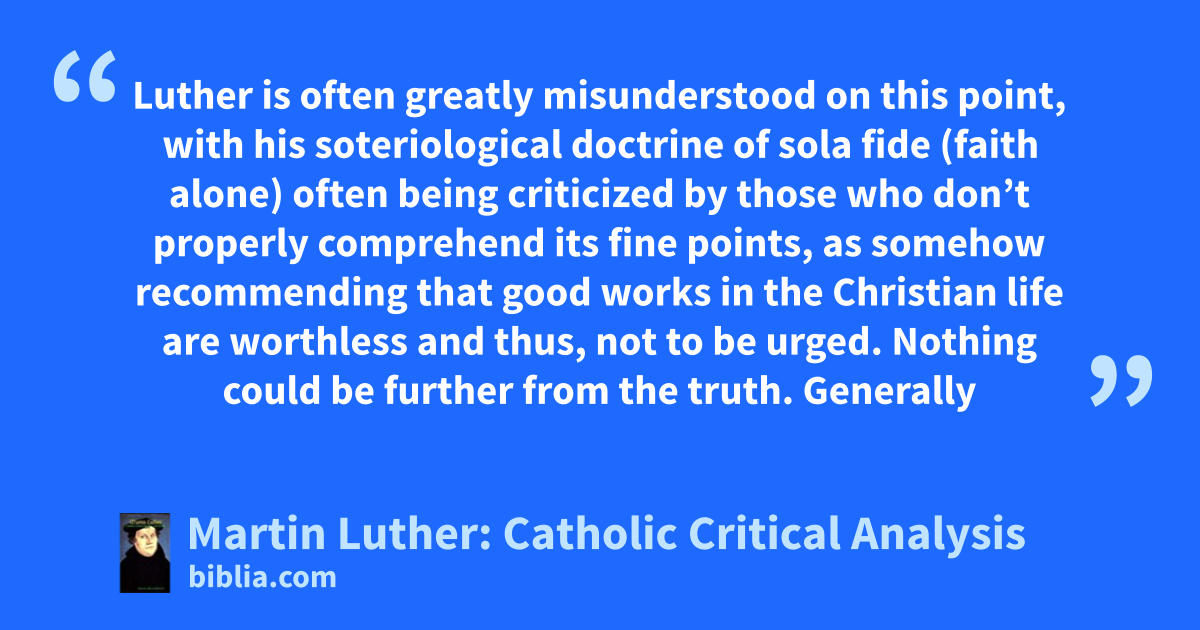 Luther is often greatly misunderstood on this point, with his soteriological doctrine of sola fide (faith alone) often being criticized by those who don’t properly comprehend its fine points, as somehow recommending that good works in the Christian life are worthless and thus, not to be urged. Nothing could be further from the truth. Generally