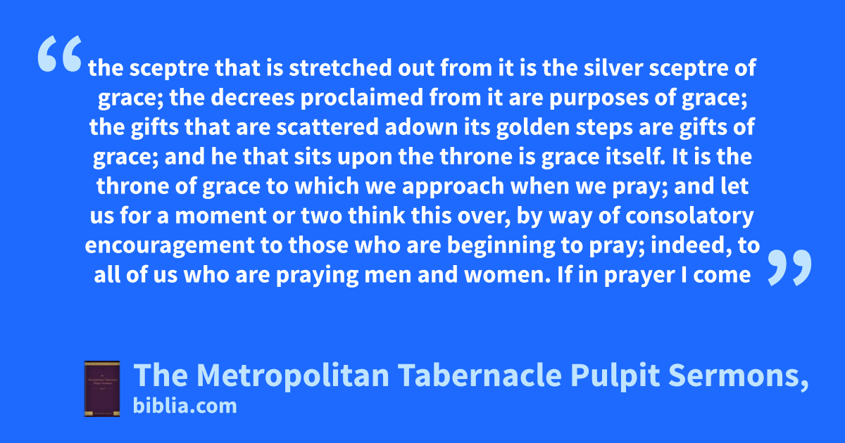 the sceptre that is stretched out from it is the silver sceptre of grace; the decrees proclaimed from it are purposes of grace; the gifts that are scattered adown its golden steps are gifts of grace; and he that sits upon the throne is grace itself. It is the throne of grace to which we approach when we pray; and let us for a moment or two think this over, by way of consolatory encouragement to those who are beginning to pray; indeed, to all of us who are praying men and women. If in prayer I come