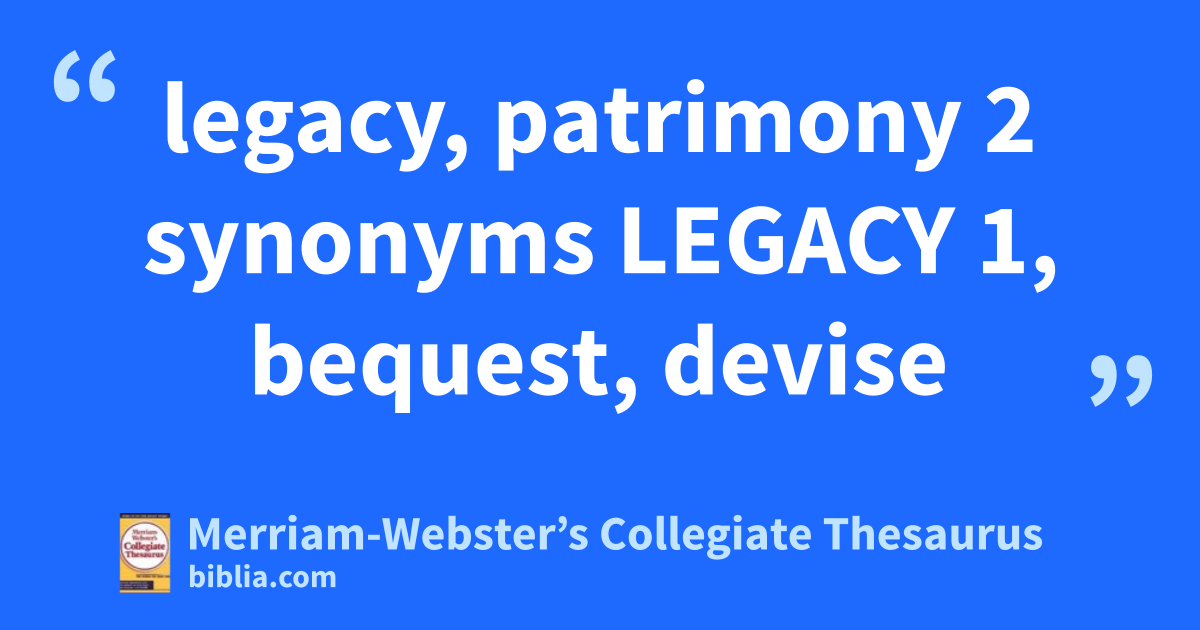 legacy, patrimony 2 synonyms LEGACY 1, bequest, devise