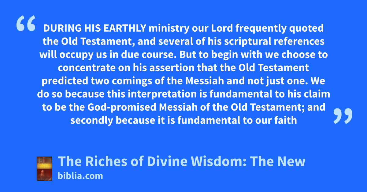 DURING HIS EARTHLY ministry our Lord frequently quoted the Old Testament, and several of his scriptural references will occupy us in due course. But to begin with we choose to concentrate on his assertion that the Old Testament predicted two comings of the Messiah and not just one. We do so because this interpretation is fundamental to his claim to be the God-promised Messiah of the Old Testament; and secondly because it is fundamental to our faith