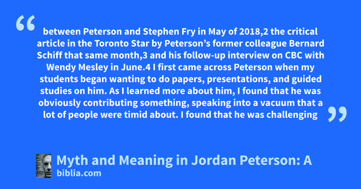 Popular philosopher Jordan Peterson has captured the imagination of Western world. For some, Peterson represents all that is wrong with patriarchal culture; for others, he is the Canadian academic prophet who has come to save civilization from dizzying confusion. Regardless of how one feels about him, his influence in North America—and beyond—is difficult to deny. While the “Peterson...