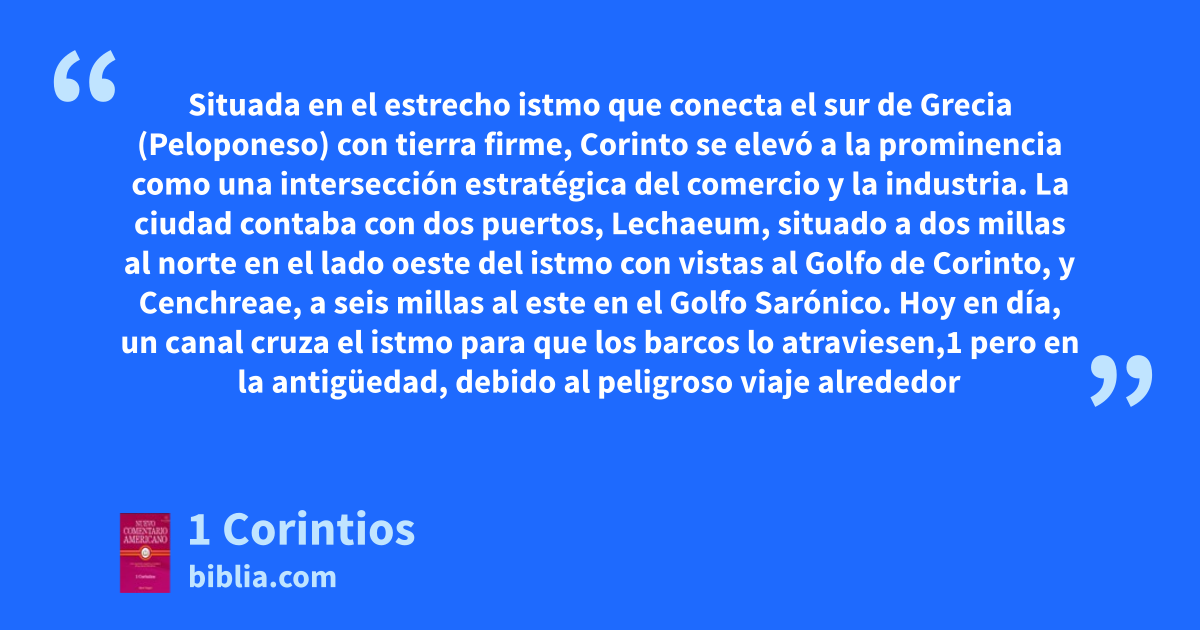 Situada en el estrecho istmo que conecta el sur de Grecia (Peloponeso) con tierra firme, Corinto se elevó a la prominencia como una intersección estratégica del comercio y la industria. La ciudad contaba con dos puertos, Lechaeum, situado a dos millas al norte en el lado oeste del istmo con vistas al Golfo de Corinto, y Cenchreae, a seis millas al este en el Golfo Sarónico. Hoy en día, un canal cruza el istmo para que los barcos lo atraviesen,1 pero en la antigüedad, debido al peligroso viaje alrededor