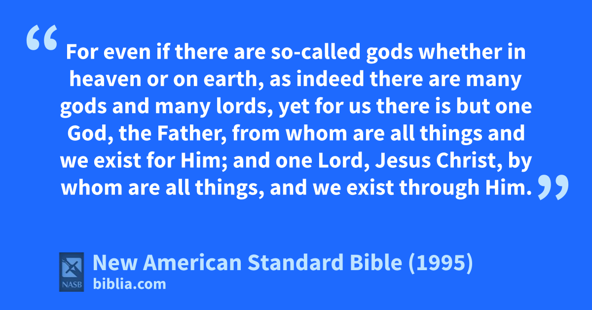 6 yet for us athere is but one God, bthe Father, cfrom whom are all things and we exist for Him; and done Lord, Jesus Christ, eby whom are all things, and we exist through Him.