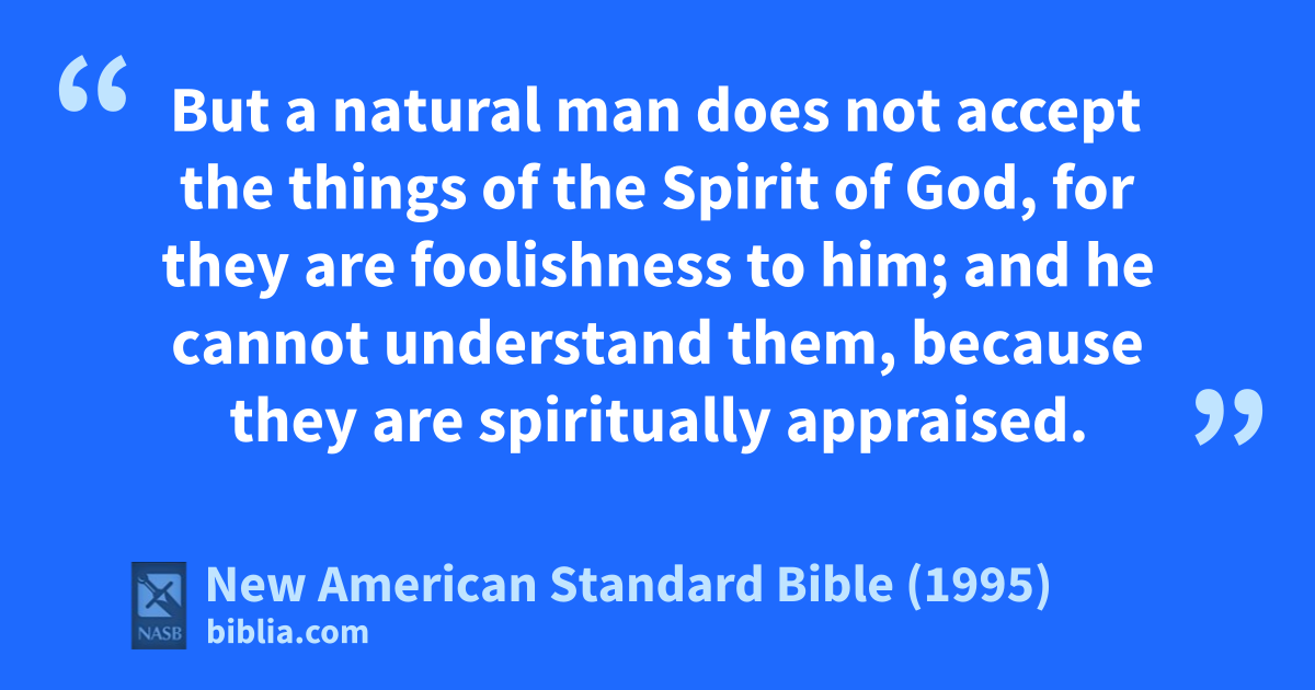 14 But 1a anatural man bdoes not accept the things of the Spirit of God, for they are cfoolishness to him; and he cannot understand them, because they are spiritually 2appraised.