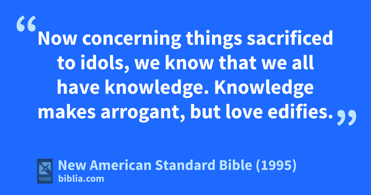 1 Now concerning athings sacrificed to idols, we know that we all have bknowledge. Knowledge 1cmakes arrogant, but love dedifies.
