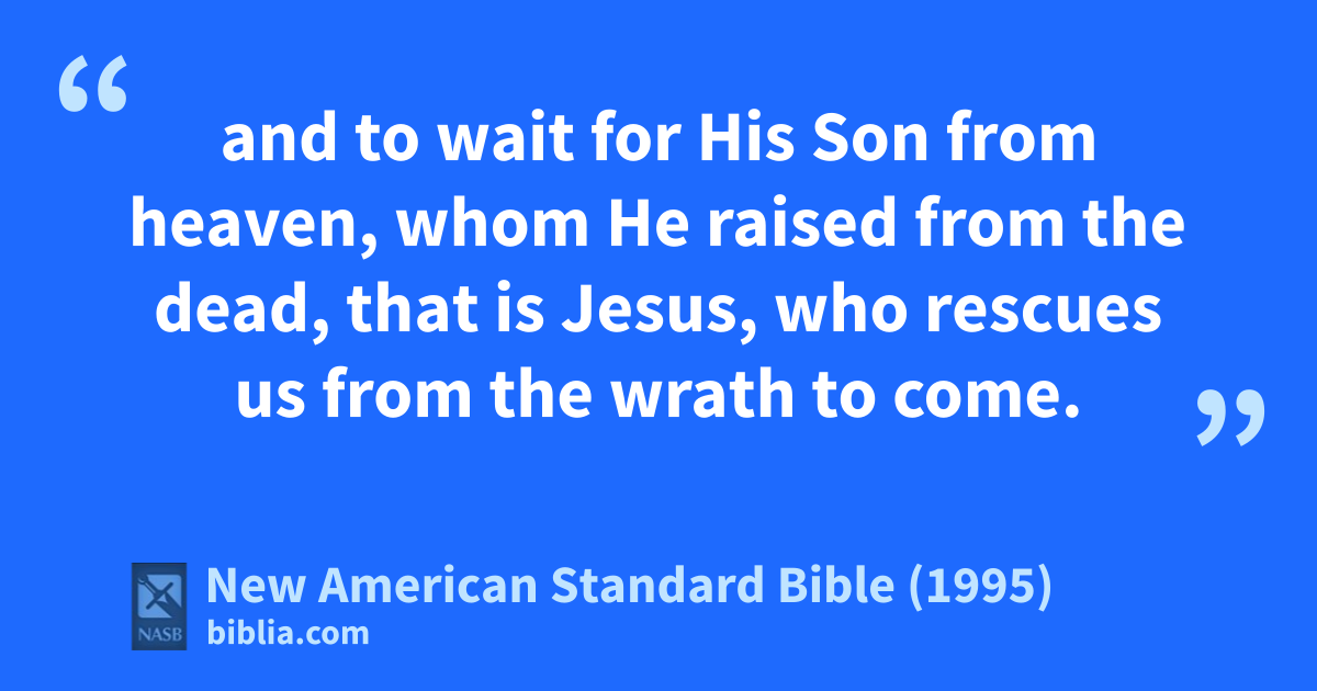 10 and to await for His Son from 1heaven, whom He braised from the dead, that is Jesus, who crescues us from dthe wrath to come.