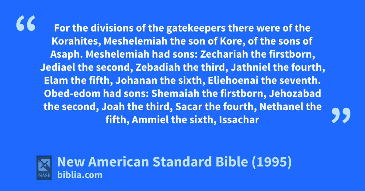 1 For the divisions of the gatekeepers there were of the Korahites, 1Meshelemiah the son of Kore, of the sons of 2Asaph.